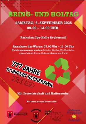 Bring- und Holtag: Samstag 6. September 2025